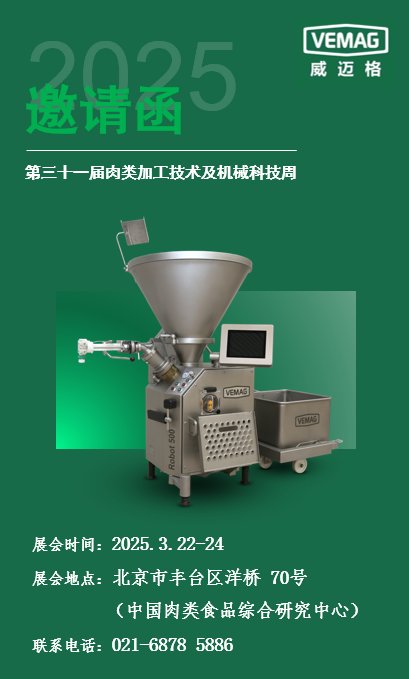 第31屆肉類加工技術及機械科技周將于3月22–24日在北京中國肉類食品綜合研究中心舉行,威邁格&魯和公司將聯手參展,現場展示世界上領先的肉類加工技術和裝備。歡迎行業朋友光臨指導、參觀考察、調研測試!